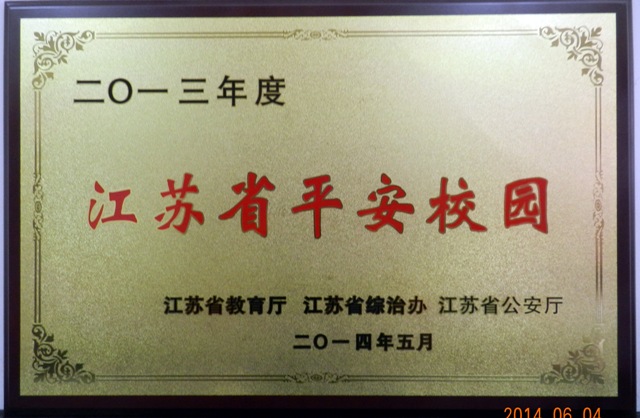 近日,江苏省教育厅、江苏省综治办、江苏省公安厅联合发文(苏教安[2014]5号),授予我院2013年度“江苏省平安校园”荣誉称号。