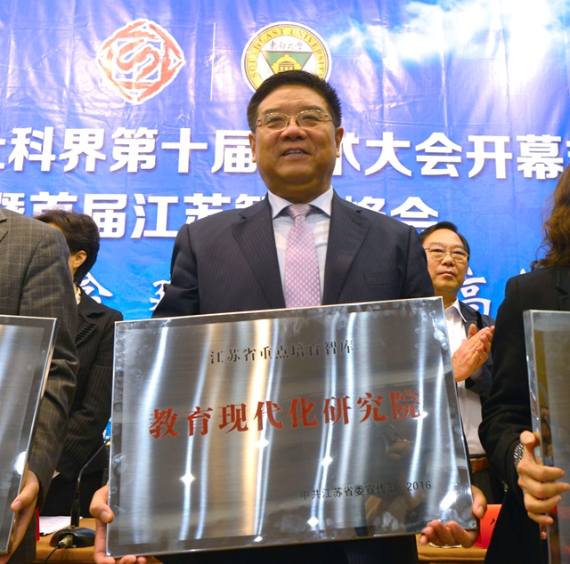 10月19日,省委宣传部、省哲学社会科学界联合会在东南大学举办江苏省社科界第十次学术大会开幕式暨首届江苏省智库峰会,省委常委、宣传部长王燕文出席会议并讲话。会议为15家重点培育智库授牌,围绕“践行新发展理念,建设强富美高新江苏”这一研讨主题,邀请国务院发展研究中心副主任隆国强、中央党校原副校长李君如、省人大副主任公丕祥、南京大学原党委书记洪银兴作主题演讲,智库、研究基地进行了分专题交流。我院党委书记、江苏教育现代化研究院院长李洪天,省教育科学规划办主任、江苏教育现代化研究院专家学术委员会主任彭钢,省教科院高等教育研究所所长、江苏教育现代化研究院专家学术委员会副主任、江苏教育强省基地秘书宋旭峰,江苏教育现代化研究院办公室主任黄正平参加会议。