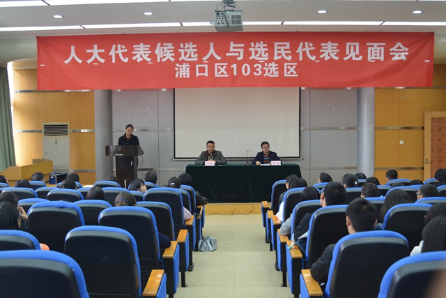 学工处处长、浦口校区人大选举办公室主任刘莹,浦口区人大代表候选人——资产经营总公司总经理赵俊、外国语学院党总支副书记黄晓波,104名选民代表参加选民见面会。刘莹主持会议。大会宣读了《关于组织召开代表候选人与选民见面会的规定》,通报了浦口区第四届人大代表换届选举工作情况和我院前期选举工作基本情况,两位候选人分别介绍了自身经历和选举优势。在选民代表提问环节,教师选民代表和学生选民代表围绕工作规划、校地共建、候选人工作经历、联系群众办法、如何行使代表权利等方面展开提问,候选人一一作了回答。