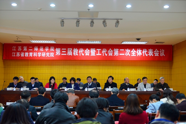 王仁雷作院行政工作报告。报告指出,2016年,我院有序推进五项重点工作,做到人才队伍建设取得突破、制度体系建设逐步规范、溧水校区建设步伐加快、事业发展规划全面实施、干部换届工作顺利完成。同时,在常规工作上取得了五“新”,即教学内涵建设有新进展、科研服务能力有新提高、教育培训工作有新成绩、管理服务效能有新提升、民生工作有新举措。报告对2017年工作目标和工作任务进行了概述,对今年学院在加强和改进思想政治工作、高质量完成专业评估和认证、进一步扩大教育科研影响力、继续加大队伍建设力度、加快溧水校区各项建设进程等重点工作进行了部署。报告指出,2017年是我院深入推进 “十三五”事业发展规划的关键之年,也是迎接专业评估和认证及校区建设的攻坚之年。报告要求各位代表、同志,在省委、省政府的正确领导和省委教育工委、省教育厅的关心支持下,紧密围绕全院党政工作要点的部署,和衷共济、开拓进取,为夺取“十三五”事业发展阶段性攻坚战的新胜利作出更大的贡献,以优异的成绩向党的十九大的胜利召开献礼。