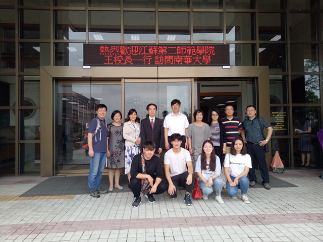 在南华大学,校长林聪明携部分二级学院院长热情接待了王仁雷一行。双方均对建立友好学校后的合作交流表示满意,并表示要对办学领域的进一步合作进行商谈。王仁雷一行参观了该校的图书馆、问题式学习(PBL)翻转教室以及虚拟摄影棚等。期间,王仁雷与我校7位在南华大学交流的学生亲切座谈,了解他们在台湾的学习、生活情况,并勉励同学们珍惜机会、学有所成,促进两岸青年学生的交流和了解。