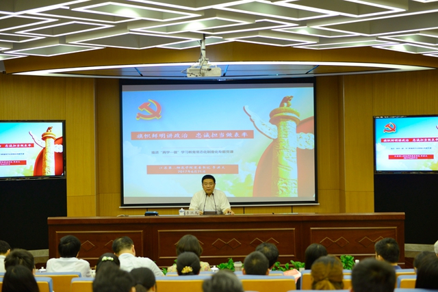 根据省委要求,为进一步推进“两学一做”学习教育常态化、制度化,院党委决定在全院开设“旗帜鲜明讲政治”专题党课。6月21日下午,党委书记李洪天在草场门校区教技楼报告厅主讲“旗帜鲜明讲政治 忠诚担当做表率”专题党课。院领导王仁雷、张勤、刘继红、王国强、祝兴成、潘文、王晓天、姚振标、胡相峰出席,全体中层干部和机关党员参加。