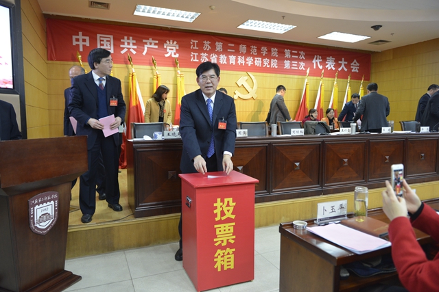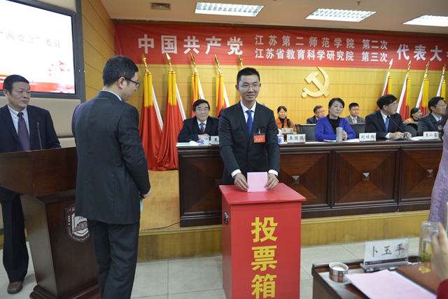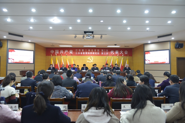 12月19日下午,中国共产党江苏第二师范学院第二次、江苏省教育科学研究院第三次代表大会胜利闭幕。大会选举产生了新一届院党委委员和纪委委员,审议通过了上一届党委工作报告的决议和纪委工作报告的决议。院党委书记王仁雷主持会议,党委副书记、院长王建致闭幕词。126名党代表参加会议。