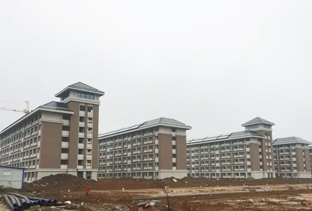 石湫校区自2017年春节后开始进行单体工程的建设,经过近两年的紧张施工,克服了材料价格上涨、建设资金紧张、环境管控的困难,目前学生宿舍组团已全部完成保洁,进行家具和空调安装;教学组团完成了室内墙地砖铺设、水电安装,脚手架已拆除,正在进行石材挂板;办公用房已完成室内吊顶安装、卫生间墙地砖铺设,准备粉刷乳胶漆;其他市政道路、景观绿化、内部装修均在有条不紊地推进。全体参建人员正按照学校校区建设的总体目标,全力以赴、攻坚克难,争取早日完成建设任务。