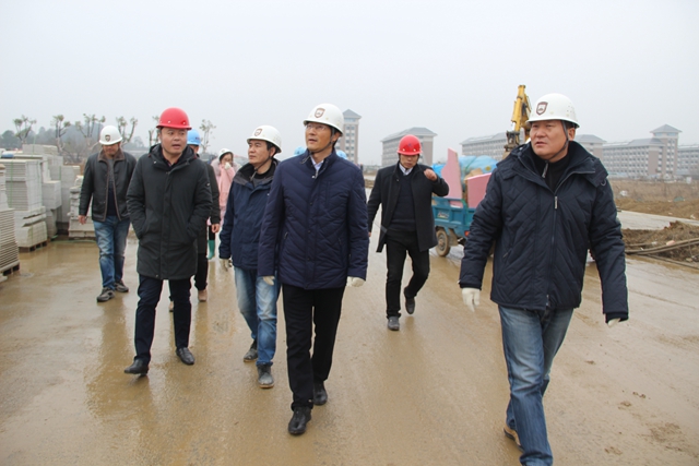 1月19日上午,校长王建、党委副书记潘文赴石湫校区视察建设进展情况并慰问一线工作人员,党委宣传部、基建处、监理和施工单位相关负责人陪同视察。