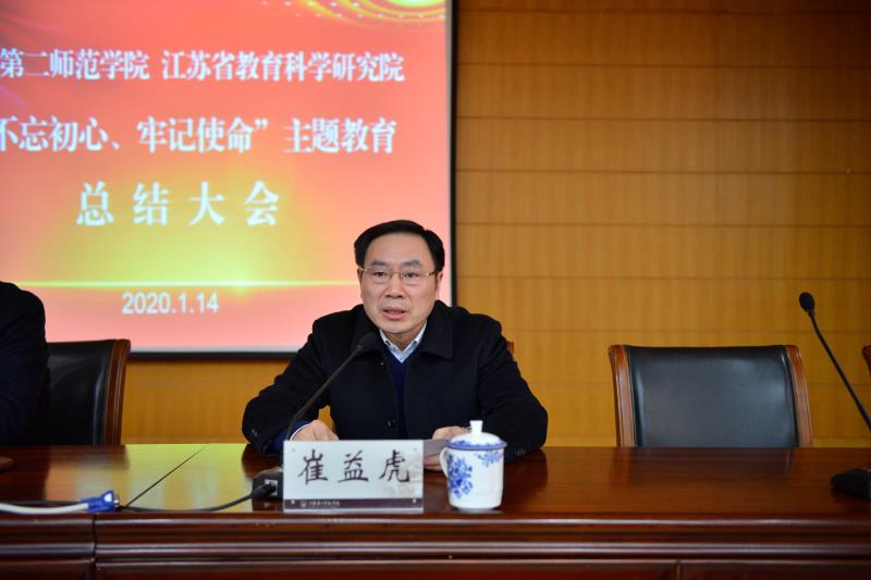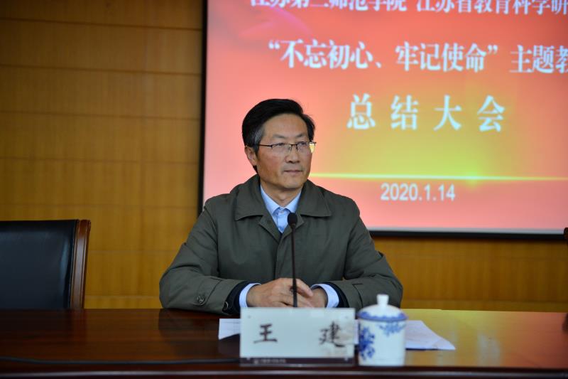 王仁雷强调本次总结大会的主要任务是认真学习习近平在“不忘初心、牢记使命”主题教育总结大会上的重要讲话,准确把握总书记重要讲话的精神实质和工作要求,自觉把思想和行动统一到讲话精神上来,把学习贯彻总书记重要讲话精神同落实党中央、省委决策部署紧密结合起来,同建设“强富美高”新江苏紧密结合起来,同建成高水平有特色师范学院和教育科研基地奋斗目标紧密结合起来,同做好当前各项工作紧密结合起来,高质量抓好新一年度工作开局,以改革发展稳定的过硬成果体现主题教育成效。