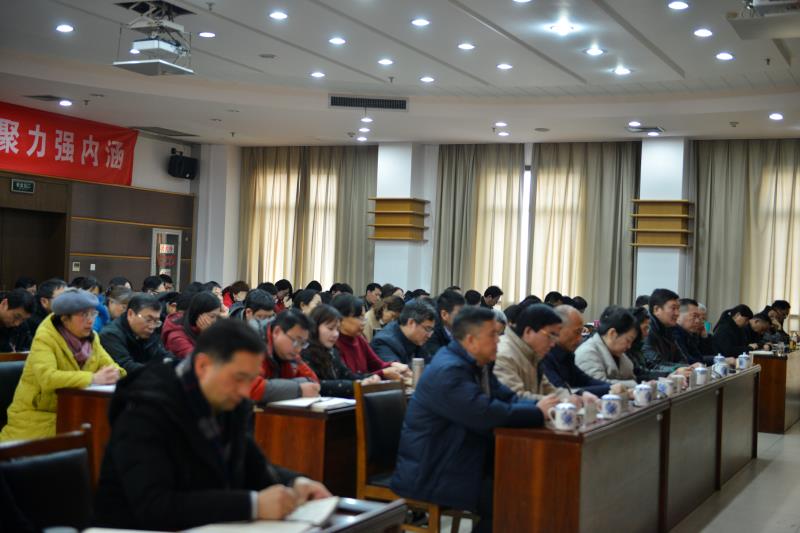 1月14日下午,我院在草场门校区召开“不忘初心、牢记使命”主题教育总结大会。省委主题教育领导小组第八巡回指导组副组长崔益虎,指导组成员陈瑶、许李军到会指导。院领导、中层干部、“两代表一委员”、民主党派负责人、教师党员代表130多人参加大会。大会由党委副书记、校长王建主持。