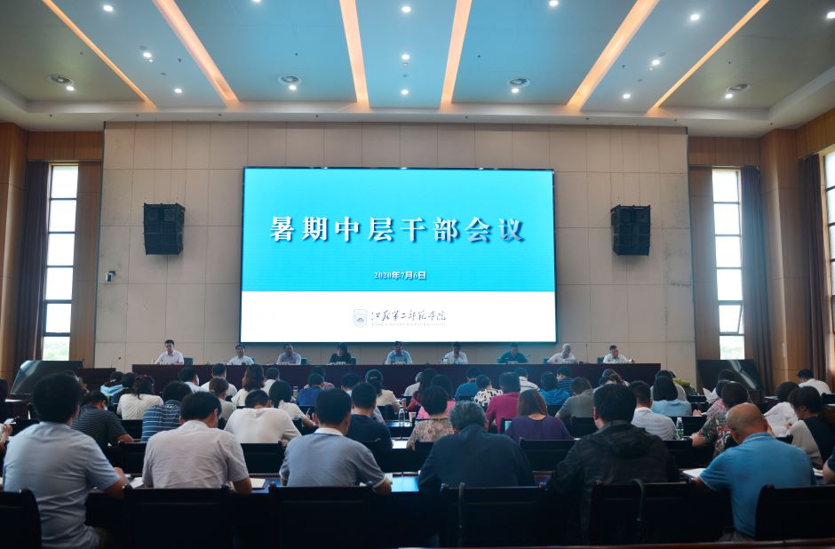 7月6日下午,我校在石湫校区敬业楼报告厅召开暑期中层干部会议。党委书记王仁雷、校长王建,校领导刘继红、潘文、祝兴成、姚振标、徐国华、陈金如、刘贵友出席会议。全体中层干部参加会议。王仁雷主持会议。