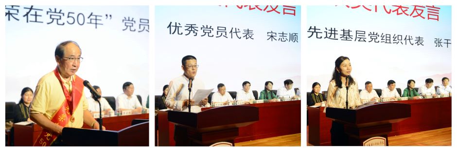 会上,“光荣在党50年”党员代表朱芒芒,获奖个人代表宋志顺,获奖集体代表、马克思主义学院学生党支部书记张干分别作交流发言。他们纷纷表示,要始终以优秀党员为榜样,为党和人民的事业奉献自己的力量。