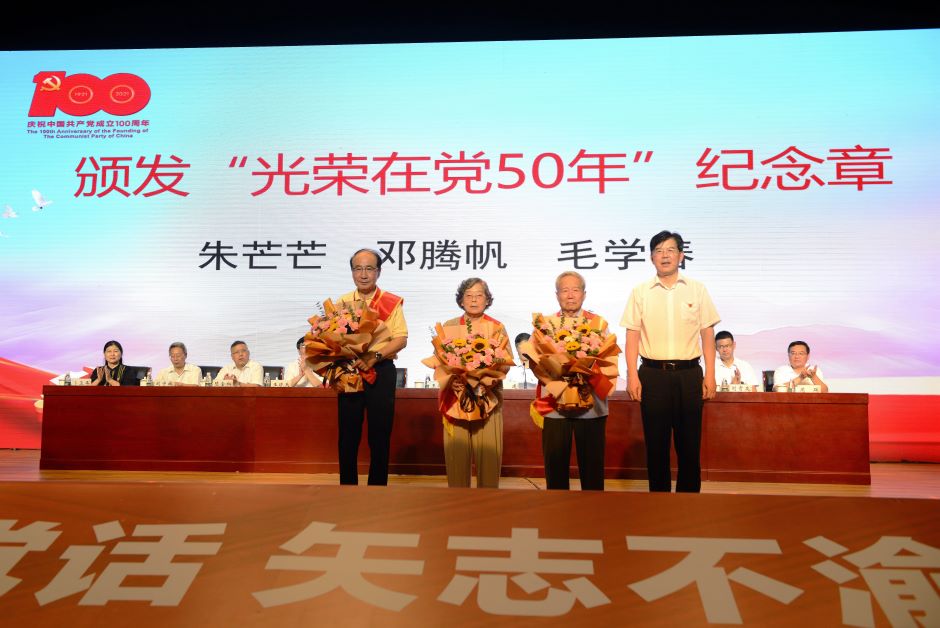 会上,党委副书记、副院长刘继红宣读了学校“光荣在党50年”党员名单及表彰决定。王仁雷为老党员代表颁发“光荣在党50年”纪念章,主席台就座的校领导为党建工作创新奖、“最佳党日活动”优胜奖、特色党支部和“两优一先”获奖集体代表和个人颁发奖牌证书。
