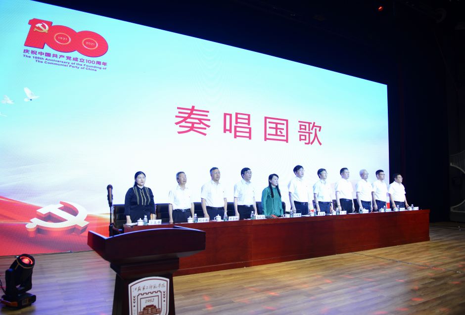 风雨苍黄百年路,高歌奋进新征程。6月28日,我院在石湫校区报告厅隆重召开庆祝中国共产党成立100周年暨“七一”表彰大会,重温党的光辉历史,讴歌党的丰功伟绩,表彰先进典型,引导激励全院各级党组织和广大党员继承和弘扬党的光荣传统和优良作风,进一步加强党的全面领导和党的建设,全方位推进我院各项事业高质量发展。党委书记王仁雷,党委副书记、院长王建,党委领导班子其他成员出席会议。教工党员、离退休党员、学生党员代表参加会议。非党员院领导、中层干部和民主党派负责人及相关同志列席会议。会议由王建主持。