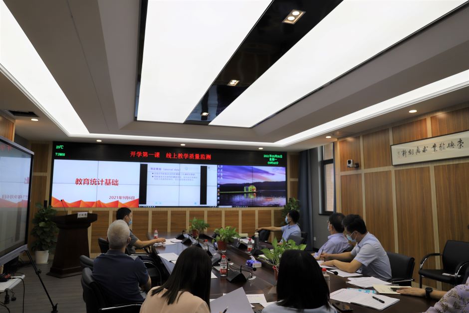 党委书记王仁雷、校长王建,校领导潘文、姚振标、徐国华、陈金如、刘贵友,带领教务处、质评处、教师教学发展中心等职能部门负责人,检查了14个学院的线上教学情况,并重点对思政课线上教学进行了观摩和点评。
