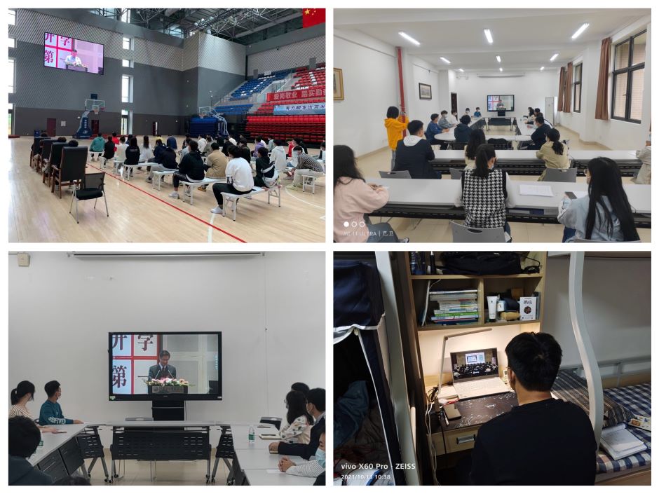 10月13日上午,校党委书记王仁雷以《传承百年初心 坚定青春信仰》为题,为2021级本科新生讲授“开学第一课”。部分新生代表在主会场聆听报告,其余本科新生以观看视频直播的方式开展学习。校党委副书记、副校长刘继红主持“开学第一课”。