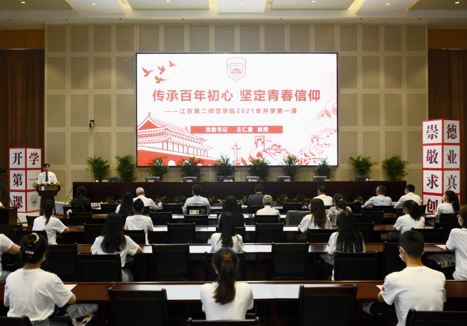 王仁雷以“传承百年初心 坚定青春信仰”为主线,为大家梳理了江苏二师扎根于基础教育沃土、致力于师德实践创新的历程。他指出,在中国共产党的领导下,我国的教育事业取得令人瞩目的辉煌成就。作为一所具有 69年办学历史的本科师范学校,江苏二师立足教师教育特色,坚持面向基础教育、服务基础教育、引领基础教育,始终对教师教育痴心不改、对办好师范教育矢志不渝,形成了职前职后融通、教育科研引领、实践取向鲜明的显著特色,赢得了“江苏基础教育名师名校长摇篮”的美誉。