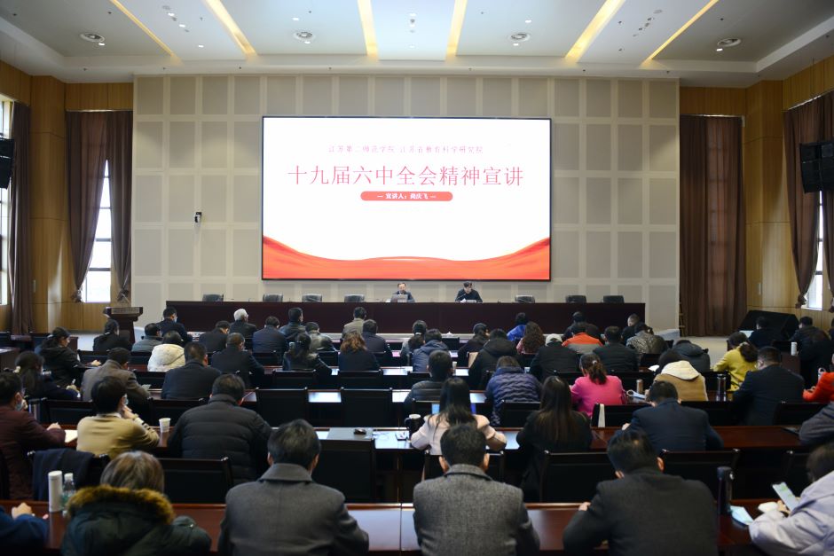 王仁雷作总结讲话。他表示,省委宣讲团来院宣讲,对我院全体师生更好地用党的十九届六中全会精神统一思想、凝聚力量,推动我院高质量发展具有重要意义。王仁雷对全院师生提出三点要求。一是要学深学透。要把认真学习贯彻全会精神作为当前和今后一个时期的重大政治任务,坚定不移把“两个确立”转化为坚决做到“两个维护”的高度自觉,转化为推动我院事业高质量发展的奋进力量。要把抓好全会精神学习贯彻与党史学习教育结合起来,用党的创新理论武装头脑,确保始终在思想上、政治上、行动上同以习近平同志为核心的党中央保持高度一致。二是要弄懂弄通。要深刻领会党百年奋斗的伟大意义,增强身为共产党人的自豪感、责任感、使命感,始终保持共产党人的政治本色和前进动力。要深学细悟全会精神的丰富内涵和核心要义,深刻领会党百年奋斗的伟大成就,不断从党的百年奋斗中汲取砥砺奋进的精神力量,引领广大教职工自立自强,为实现中华民族伟大复兴作出新的更大贡献。三是要落地落实。要把学习贯彻全会精神同深入学习贯彻《习近平总书记教育重要论述讲义》紧密结合起来,同省委和院党委的决策部署结合起来,同当前的各项工作结合起来,做到学而信、学而用、学而行,把学习贯彻全会精神转化为工作强大动力。切实把学习成果转化为引领两院事业高质量发展的强大动力和实际成效,担负起“争当表率、争做示范、走在前列”的光荣使命,为“强富美高”新江苏建设、社会主义现代化强国建设作出新的更大贡献。