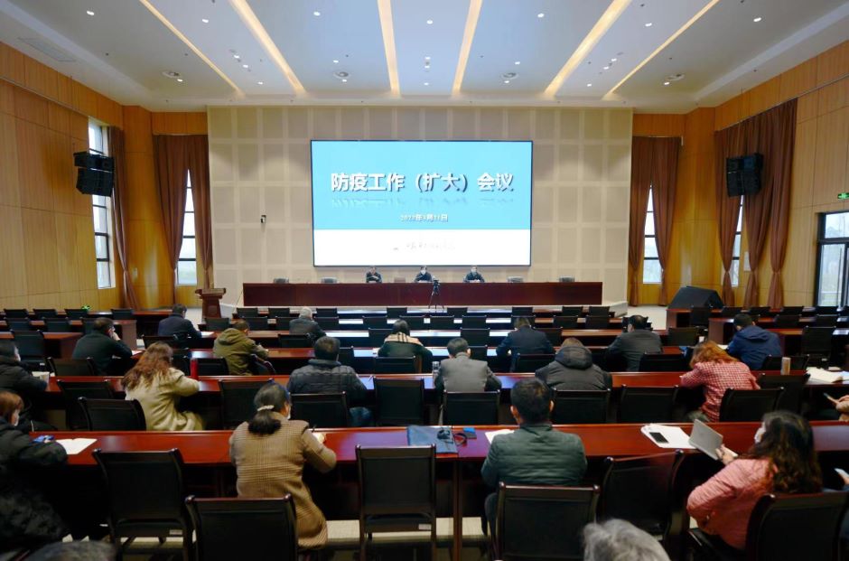 3月21日下午,我校在石湫校区敬业楼107报告厅召开专题会议,对疫情防控工作再强调、再部署。党委书记王仁雷、校长王建、副校长祝兴成出席会议并讲话,各职能部门、二级学院负责人参加会议。