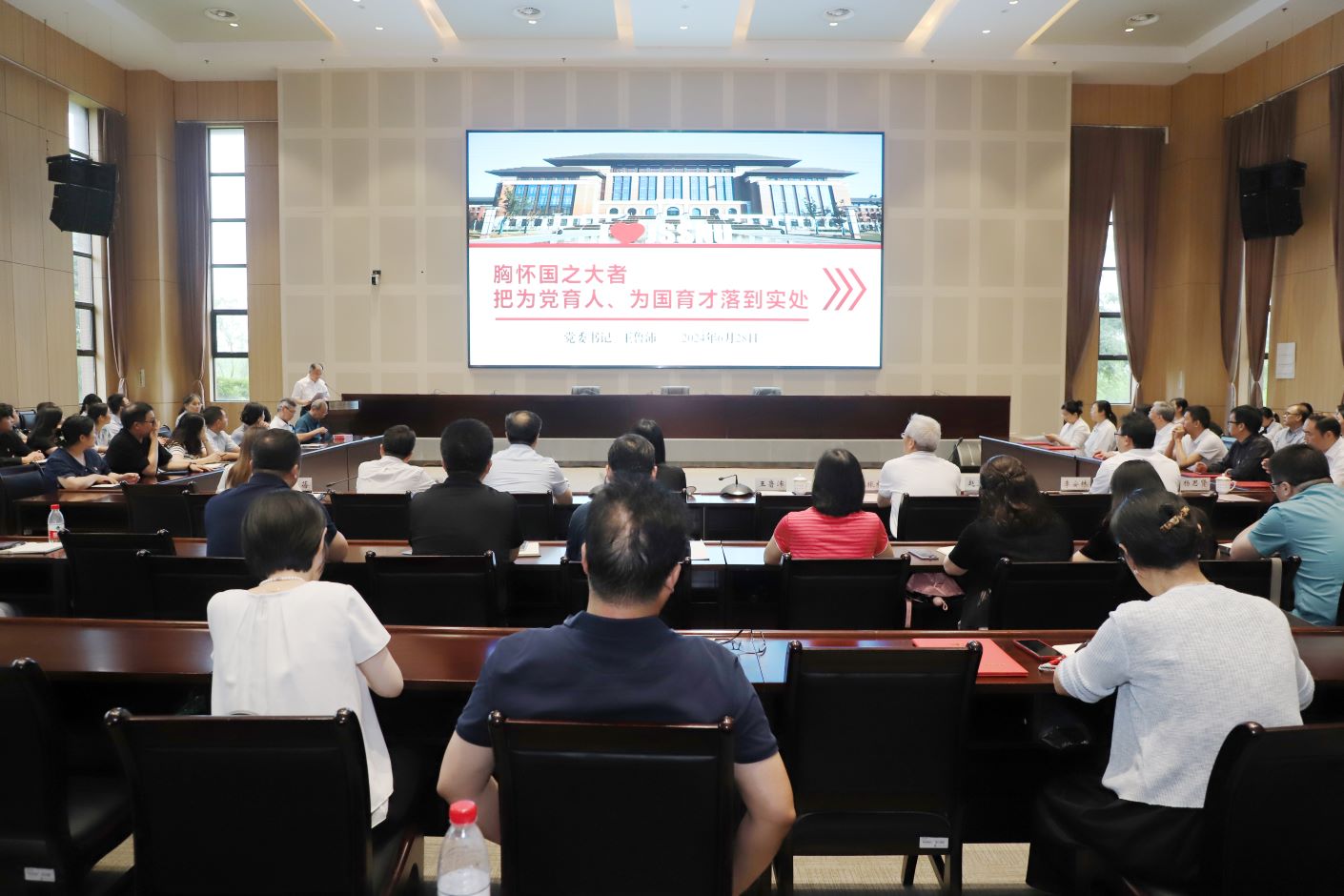 最后,王鲁沛以“胸怀国之大者,把为党育人、为国育才落到实处”为题为全体党员上了一堂生动的党课。他指出,高校领导干部要胸怀国之大者,提高政治判断力、政治领悟力、政治执行力,在新时代新征程上遵守党的政治纪律,把立德树人作为根本任务,全面贯彻党的教育方针,把立德树人的成效作为检验学校一切工作的根本标准,同时要建立立德树人落实机制,担负起政治责任,以教育家精神涵养培育新时代的“大先生”。他表示,全体党员同志要以更高的政治站位、更强的使命担当,深刻领悟和准确把握党中央赋予高等教育的重大使命,始终心怀“国之大者”,奋力开启特色鲜明高水平大学建设新征程,坚持把高质量发展作为生命线,奋力在教育强国建设中担当新使命、谱写新篇章。
