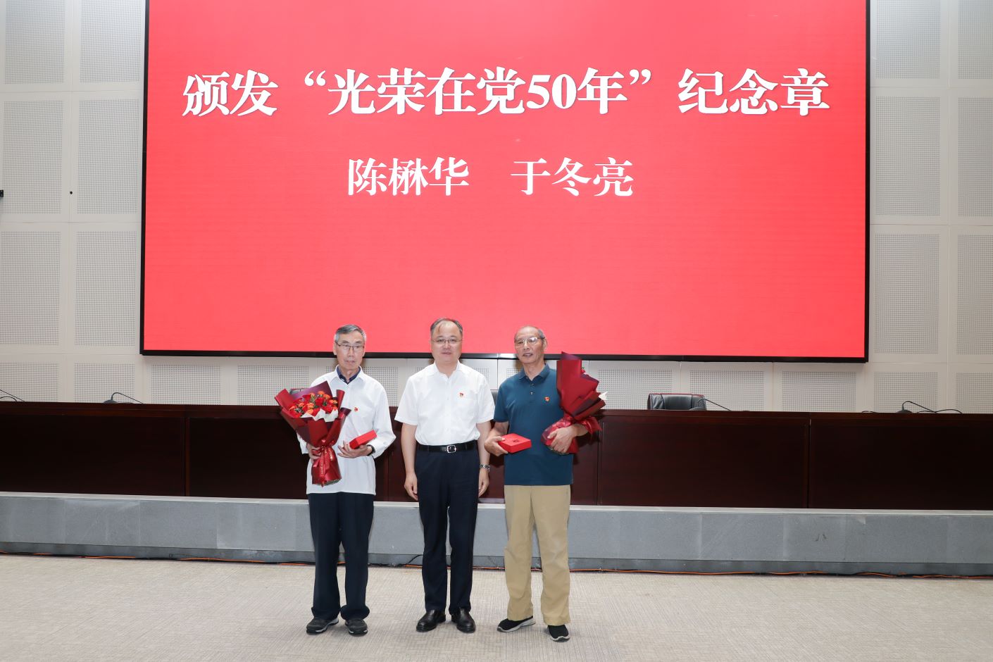 为“光荣在党50年”的老党员颁发纪念章