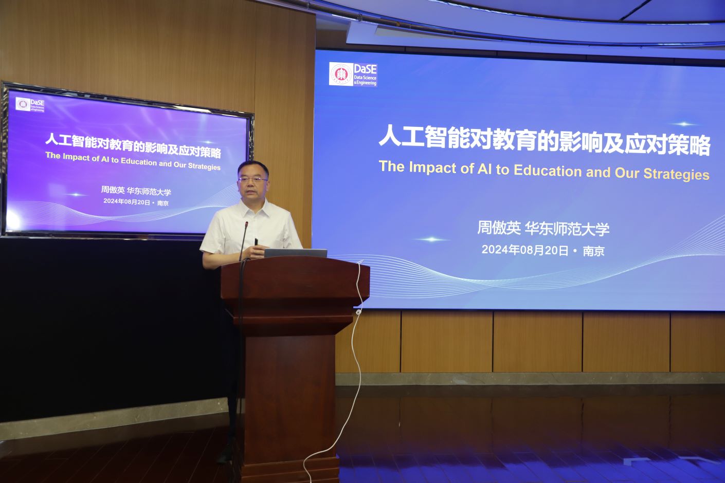 8月20日,“教育家精神时代实践——人工智能与未来师范教育研讨会”在我校举行。会议以专家报告、经验分享等形式展开,深入探讨教育家精神在新时代的实践路径以及人工智能如何引领未来师范教育的发展。江苏省教育厅副厅长、党组成员顾月华,江苏第二师范学院党委书记王鲁沛在开幕式上致辞,江苏第二师范学院党委常委、副校长皇甫立同主持开幕式。