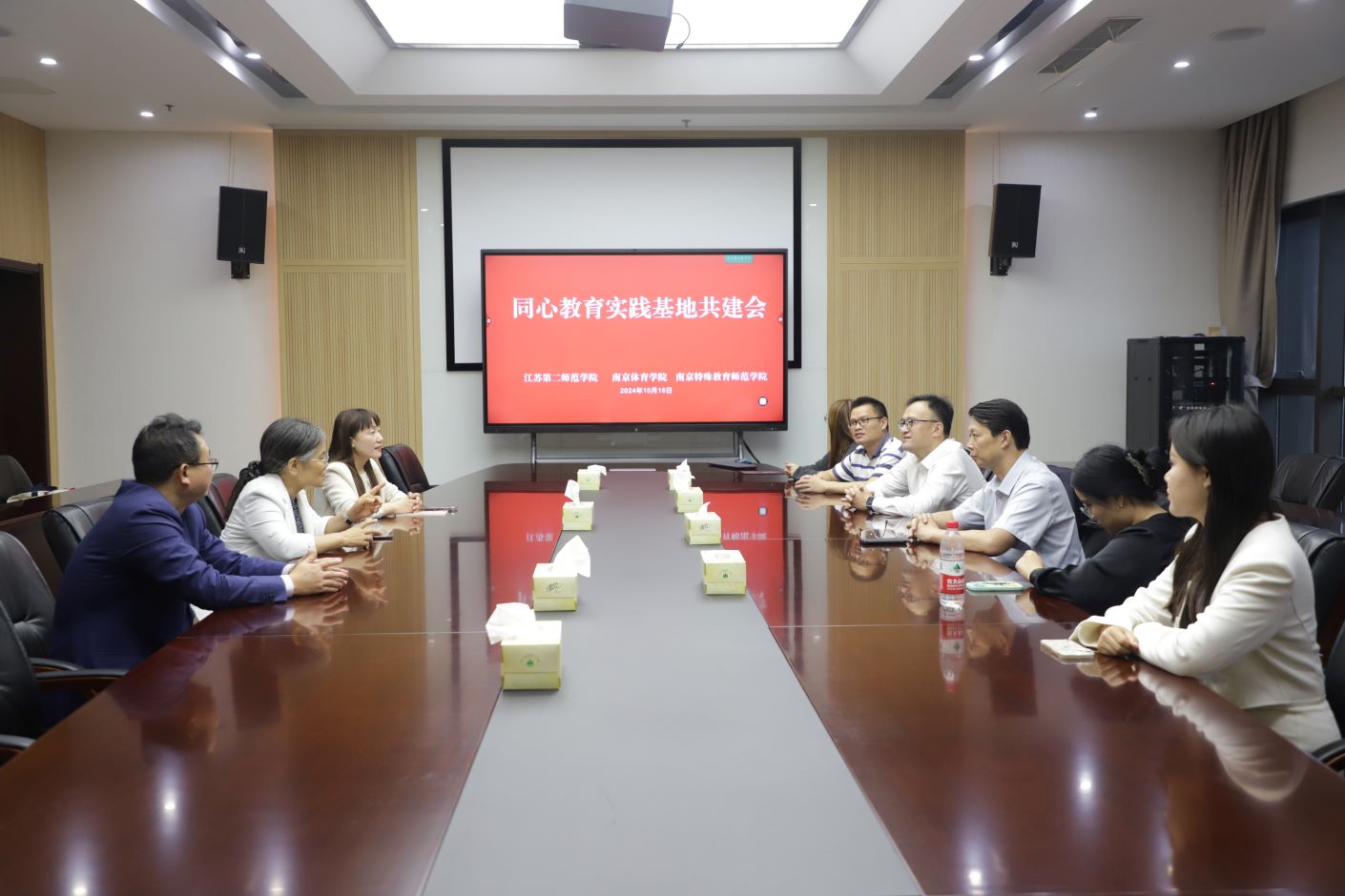 展演结束后。我校党委统战部与南京体育学院、南京特殊教育师范学院就进一步建设同心教育实践基地,推动统一战线工作创新发展开展了深入交流与研讨,并参观我校“同心·传承”教育实践基地和弘扬践行教育家精神主题展。