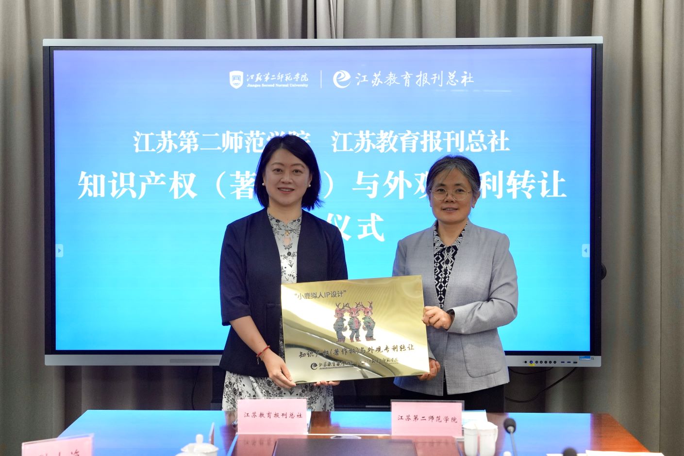 仪式上,崔燕与邵林分别代表双方签署战略合作协议。赵玉蓉向邵林转交了“小鹿拟人IP”知识产权转让铜牌。