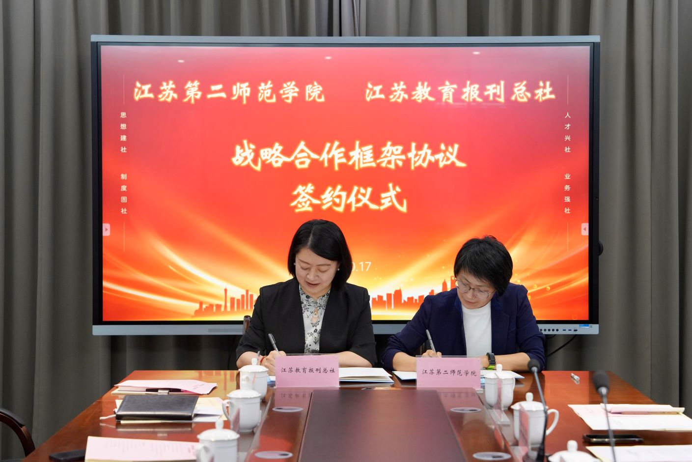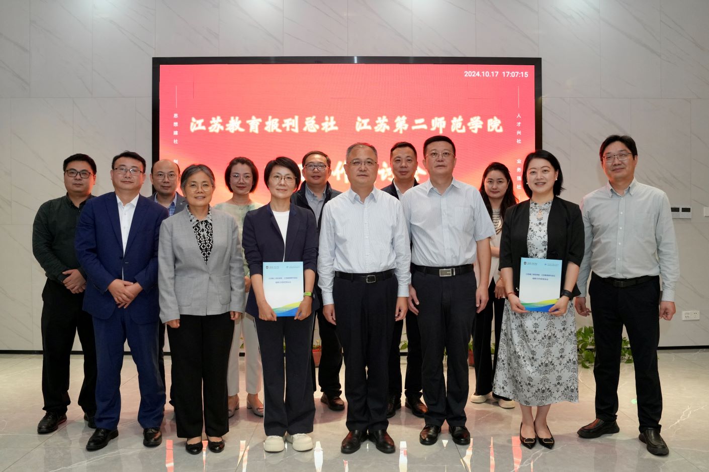 10月17日,我校与江苏教育报刊总社战略合作签约仪式在江苏教育报刊总社江北基地举行。校党委书记王鲁沛,校领导崔燕、赵玉蓉,江苏教育报刊总社党委书记、社长董胜,总社副总编辑邵林,校党委常委、宣传部部长李安林等出席仪式。仪式由总社副社长王伟主持。