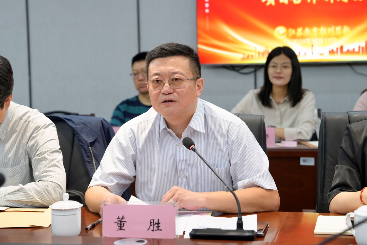 董胜致欢迎辞,简要介绍了总社的历史沿革和近期成绩。他表示,总社是省教育厅直属宣传出版单位,现已构建完成“两报”“七刊”“一网”“一馆”等在内的教育全媒体集群。此次与我校开展战略合作,是两个同样具有70多年历史积淀的单位之间的携手,意义重大,影响深远。期待双方立足各自擅长领域,加强资源共享、平台共建、项目共推,在数字传媒研发、教育宣传、校长培训等方面不断培育新成果。