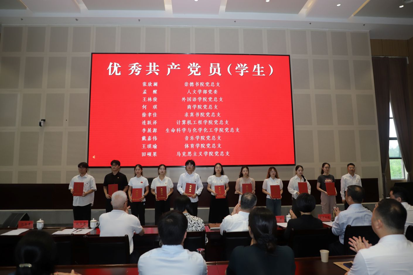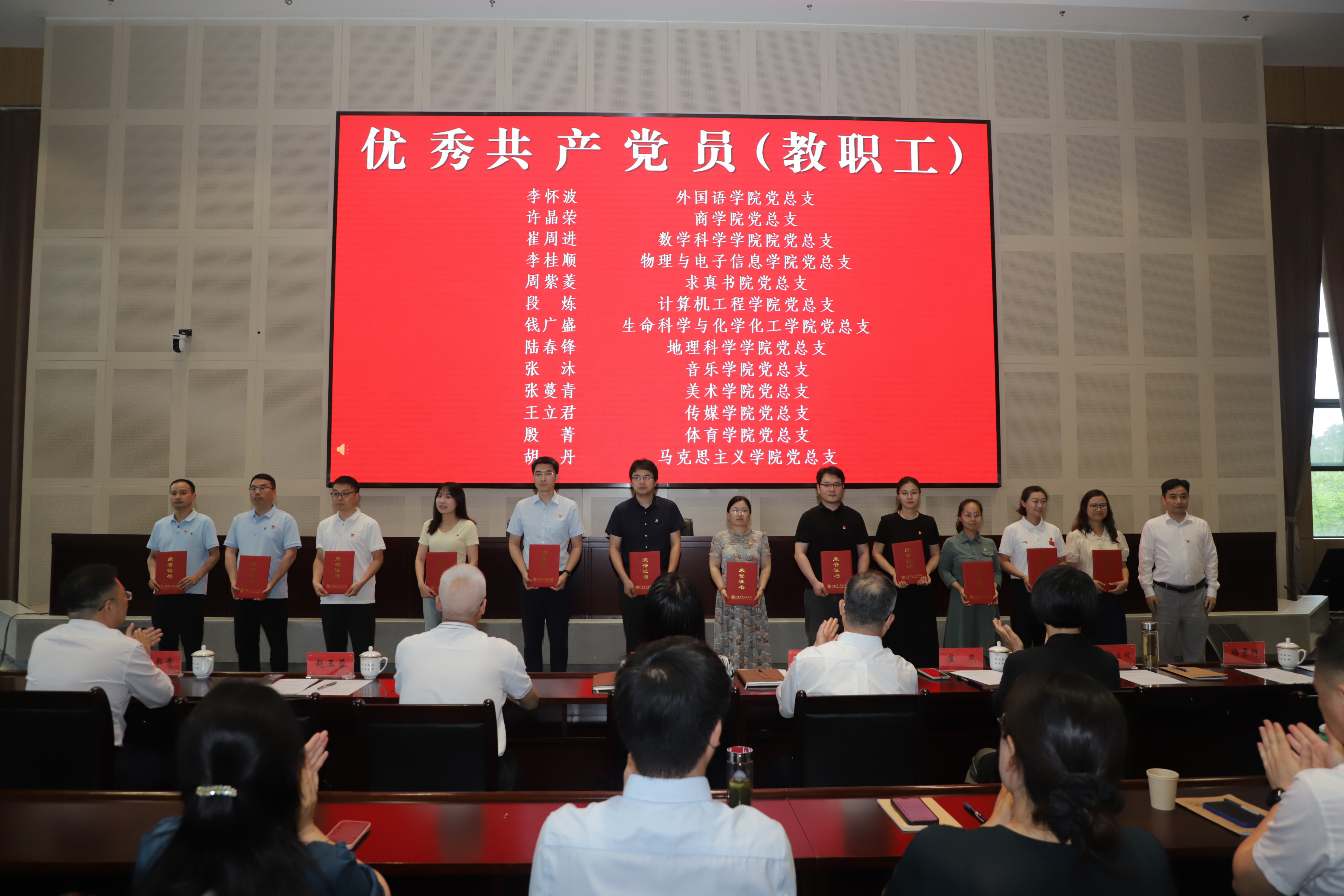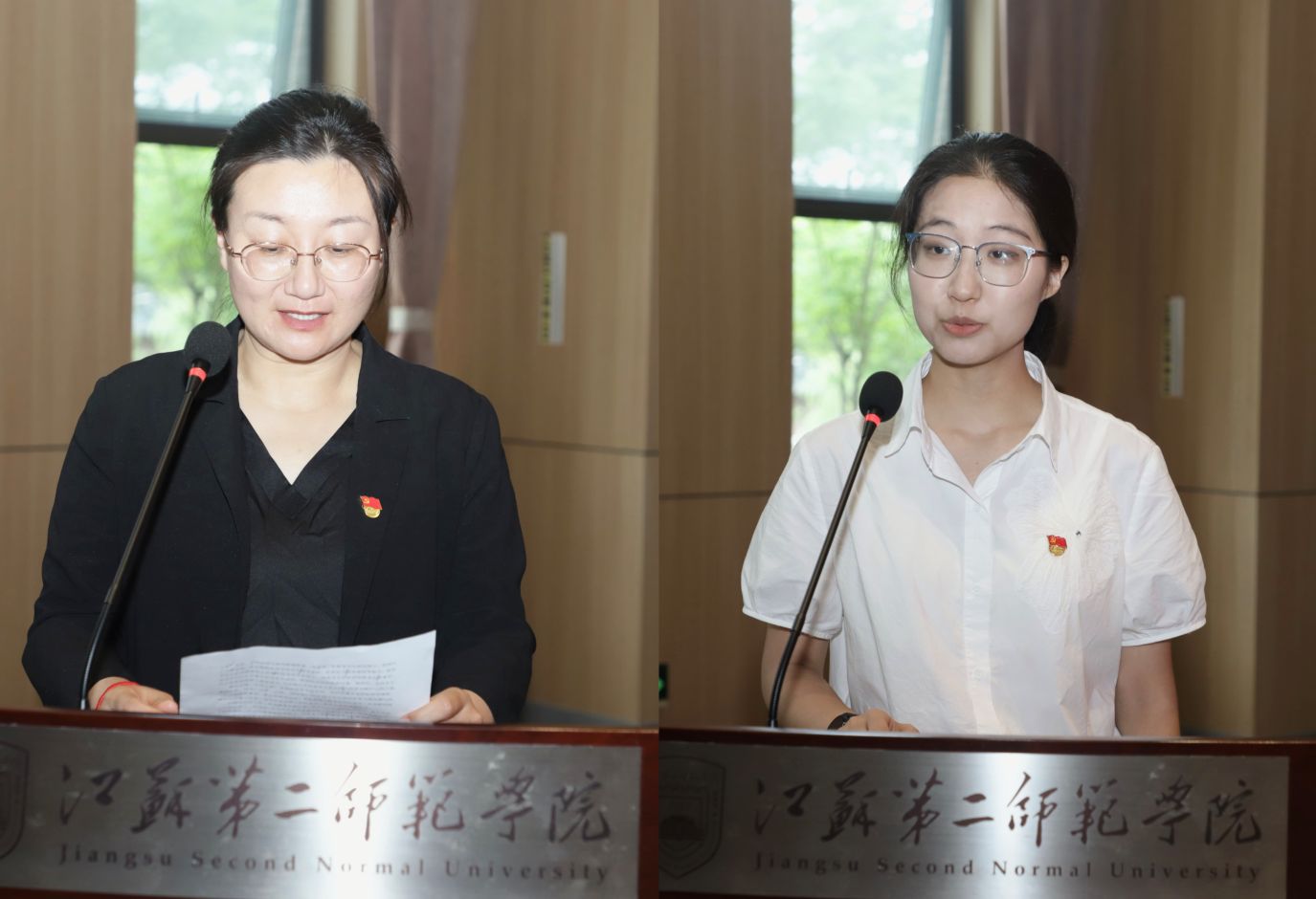 地理科学学院的教师党员马小雪和马克思主义学院的学生党员田硕果分别作为优秀党务工作者代表和优秀学生党员代表发言。