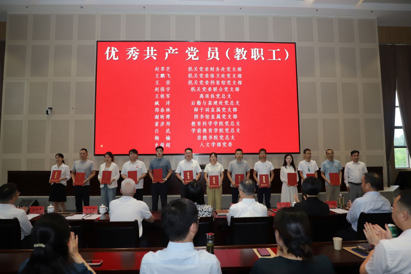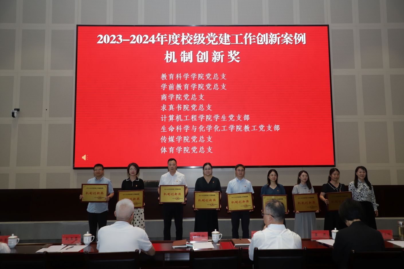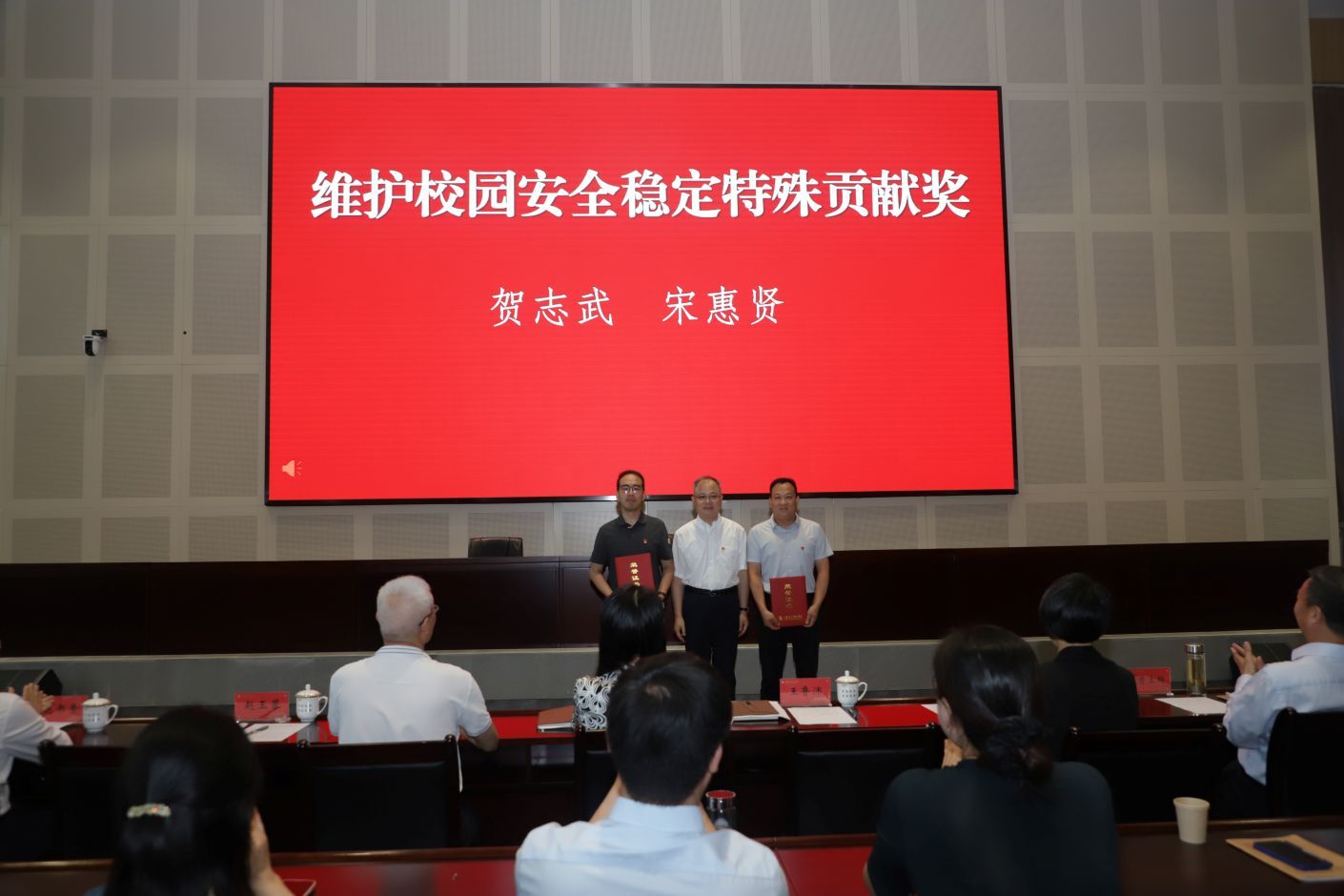 大会在雄壮的国歌中拉开序幕。赵玉蓉宣读表彰决定,校领导为获表彰的个人和集体颁发证书和奖牌。