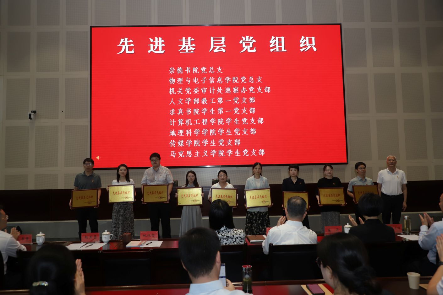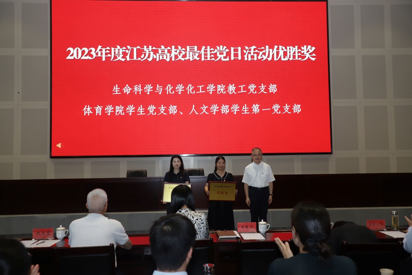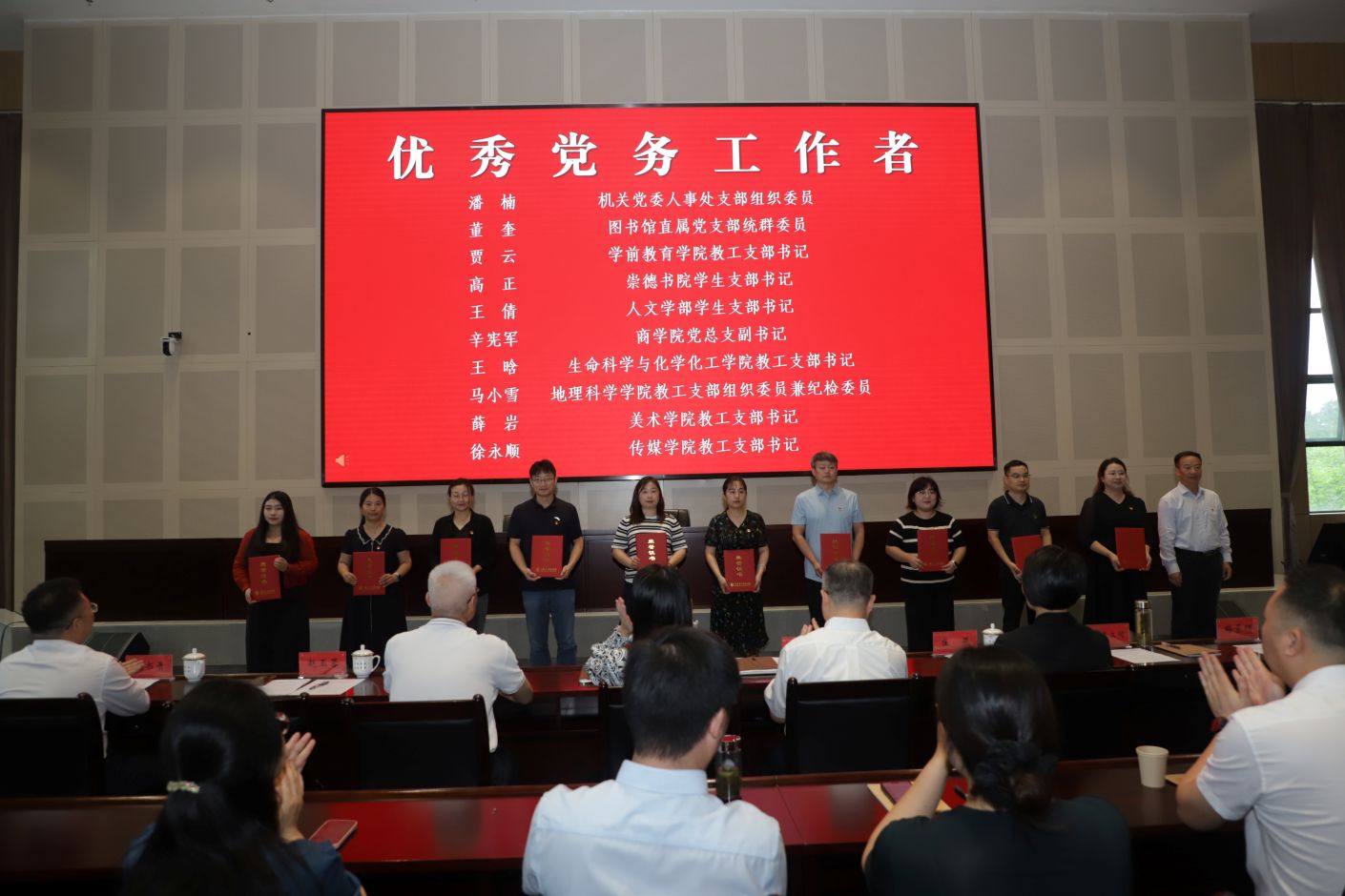 大会在雄壮的国歌中拉开序幕。赵玉蓉宣读表彰决定,校领导为获表彰的个人和集体颁发证书和奖牌。