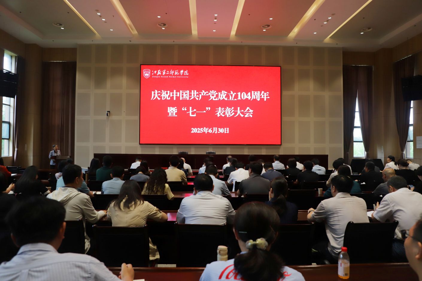6月30日上午,我校在石湫校区敬业楼107报告厅召开庆祝中国共产党成立104周年暨“七一”表彰大会。党委书记王鲁沛出席会议并讲授专题党课。在宁校领导、中层正职干部、师生党员代表参加会议。会议由党委常委、副校长赵玉蓉主持。