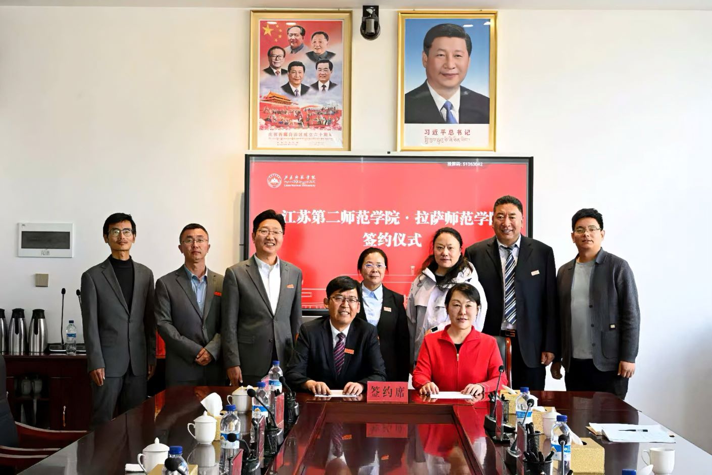 10月12日上午,代表团一行出席了拉萨师范学院建校50周年发展大会,会后举行了产学研合作协议的签订仪式。拉萨师范学院校长杨继军,党委副书记、副校长张越友及相关职能部门负责同志参加仪式。此次协议的签署标志着两校战略合作进入了以产学研深度融合为标志的新阶段,双方将在高原特色学科共建、联合科研攻关、教师专业发展、实习实践基地建设、文化交流交往交融等方面的合作进一步走深走实。