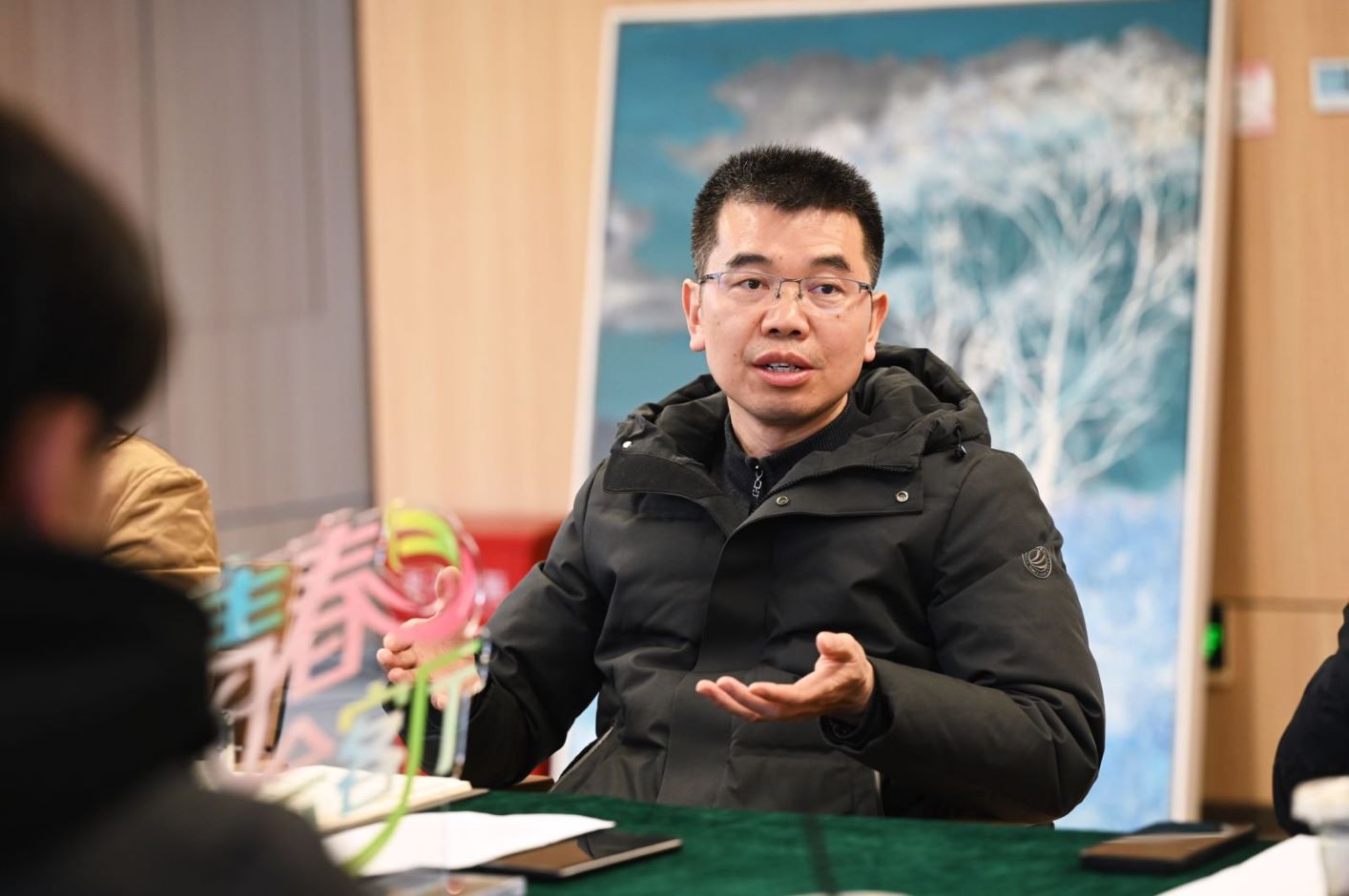 “校长下午茶”同步温馨展开。徐国华、花书贵等与同学们亲切交谈,从科研学习到社会实践,从团学活动到职业规划,从跨学科、跨场域到专业融合,两位校领导与同学就“大学与青春”的话题不断交换观点,现场气氛融洽。花书贵结合专业学习为同学们提供宝贵经验,他鼓励同学勤于钻研,在科学研究和实践中寻找真理;徐国华深情鼓励同学们珍惜大学时光,充分用好学校提供的各类学习资源和发展平台,不仅要扎实学好专业知识,还要主动拓展学习渠道,积极参与跨学科交流、社会实践和国际交流,在多元体验中丰富青春底色。他寄语大家:“大学是人生最宝贵的阶段,希望你们以奋斗姿态激扬青春,在实践中不断增长才干。”