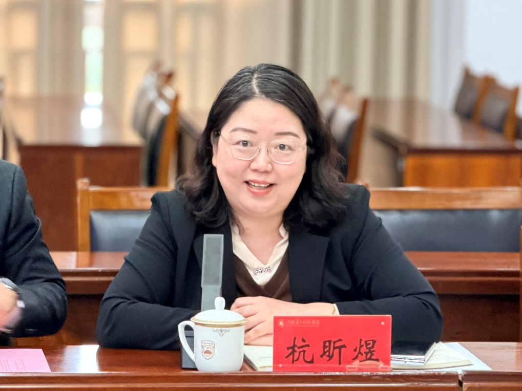 建邺区相关部门领导依次介绍情况。区科技局局长杭昕煜回顾了双方此前合作成果,介绍了建邺区从房地产、金融业到人工智能的发展转型历程,以及人工智能国际街区建设情况,表示将积极搭建合作平台,推动校地资源优势互补。区文旅局副局长陆萍介绍了建邺区江苏大剧院、保利大剧院等演绎空间资源,以及莫愁湖花卉节、江豚音乐节等文化活动,提出双方可围绕数字文旅、直播电商等领域深化合作,为学校人才培养提供实践方向。区教师发展中心副校长庆晨则介绍了建邺区“人工智能+教育”的发展成果,为双方在数智化课堂、心理健康等领域的合作提供了思路。