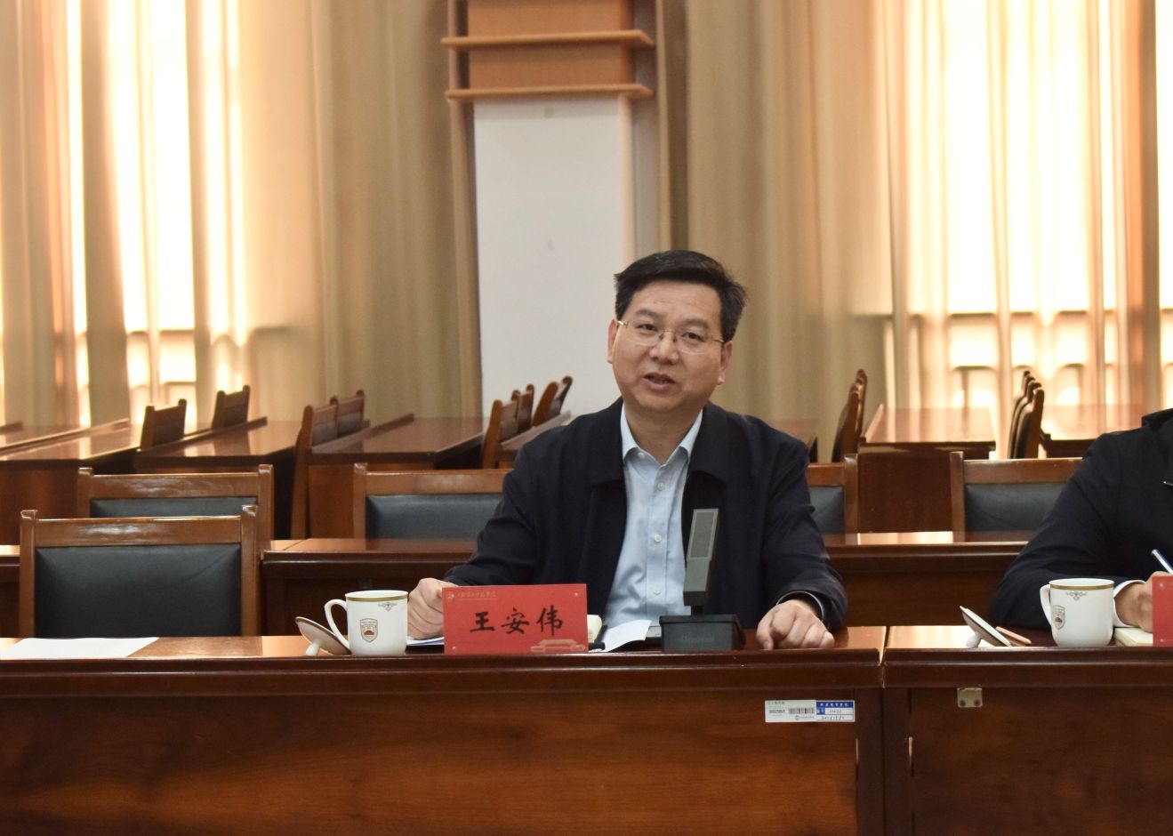 兰亚明代表学校对王安伟书记一行表示热烈欢迎,对鼓楼区长期以来给予学校的关心与支持表示衷心感谢。他指出,我校始终坚守立足基础教育、服务区域发展的办学定位,正全力向着建设特色鲜明的应用型高水平师范大学目标迈进。他围绕深化校地协同、服务区域发展提出四点合作愿景,希望双方在思政育人、数字教育、文化引领、师资培育等方面深化合作,共同推动校地融合与基础教育高质量发展。