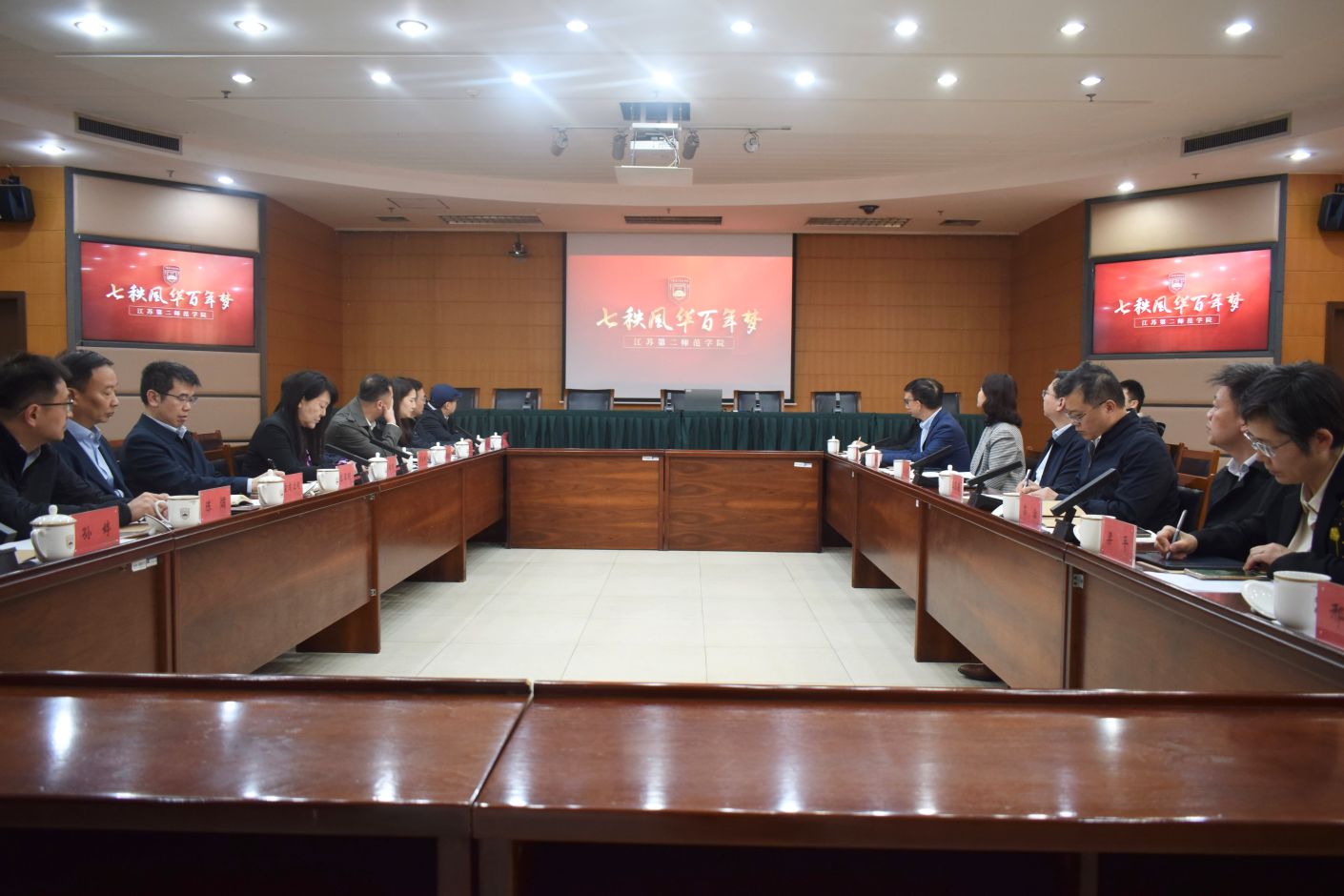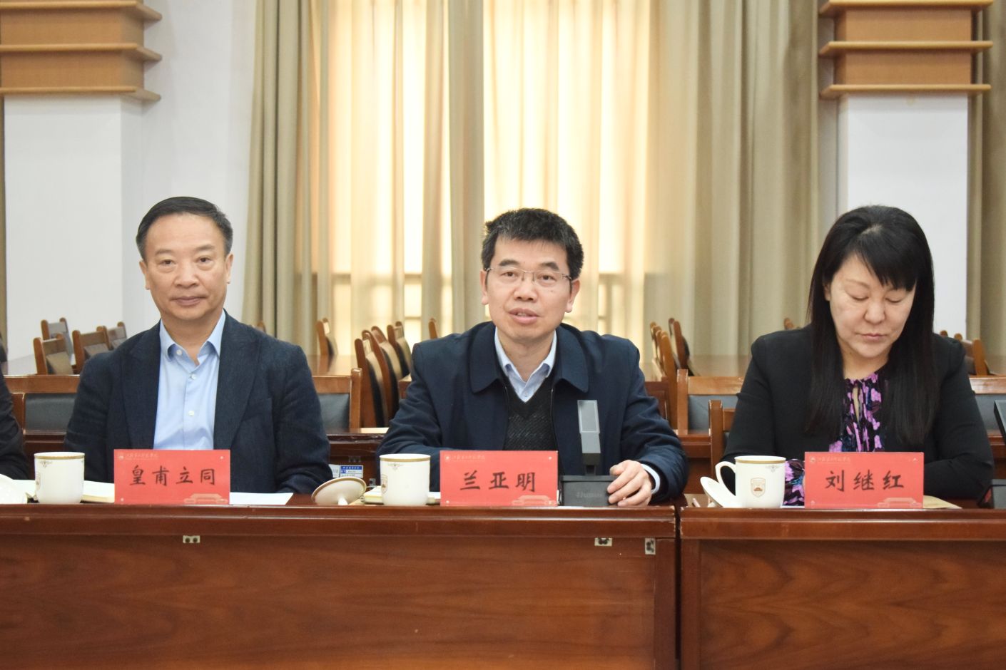 4月17日上午,南京市鼓楼区委书记王安伟,区委副书记王玉春,区委常委、区委宣传部部长陈海涛一行来我校开展校地合作专题调研交流。党委书记兰亚明主持会议并致辞,党委副书记、副校长刘继红,党委常委、副校长皇甫立同出席会议。