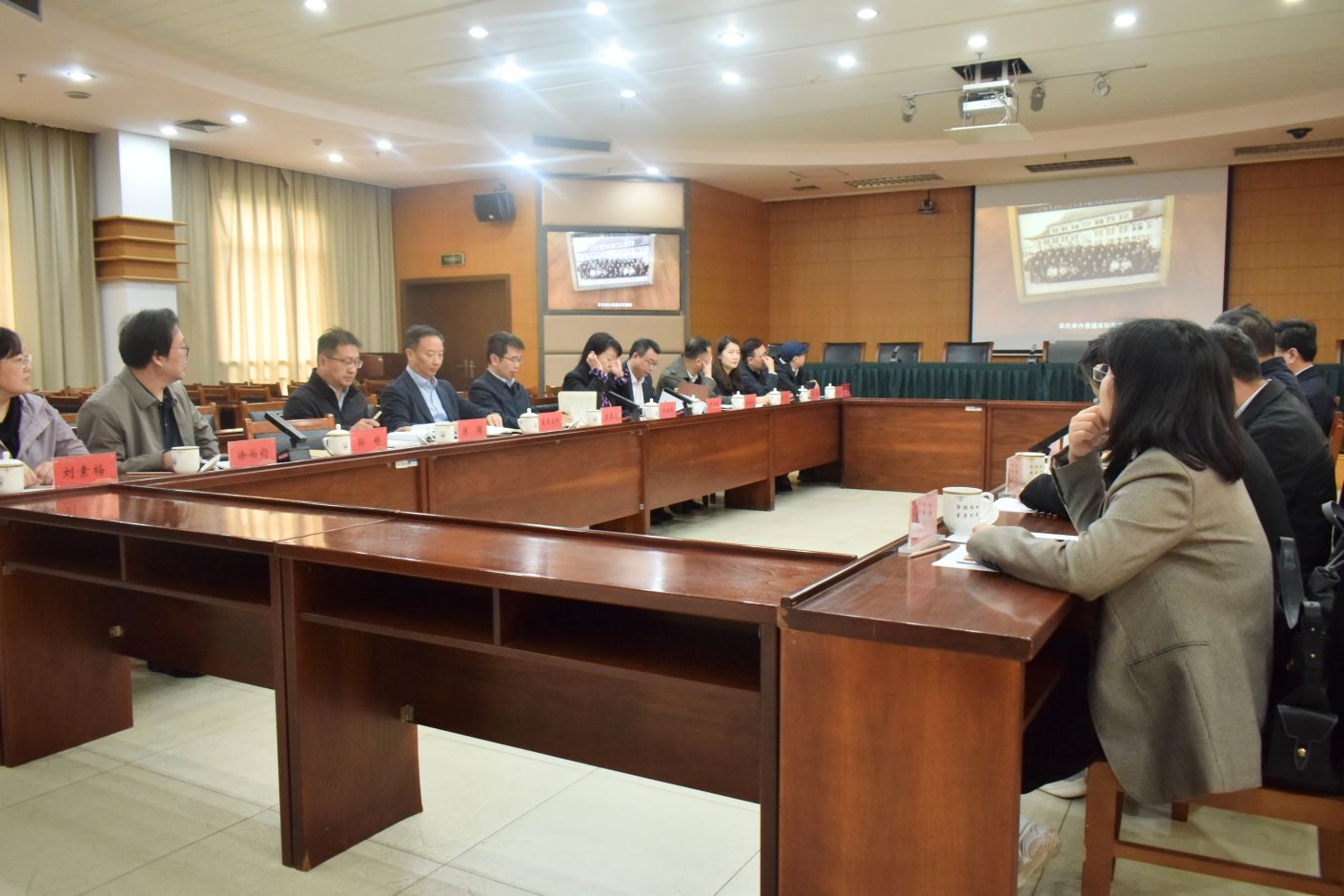 鼓楼区委、区政府等相关部门负责人及我校相关职能部门、二级学院负责人参加调研座谈。
